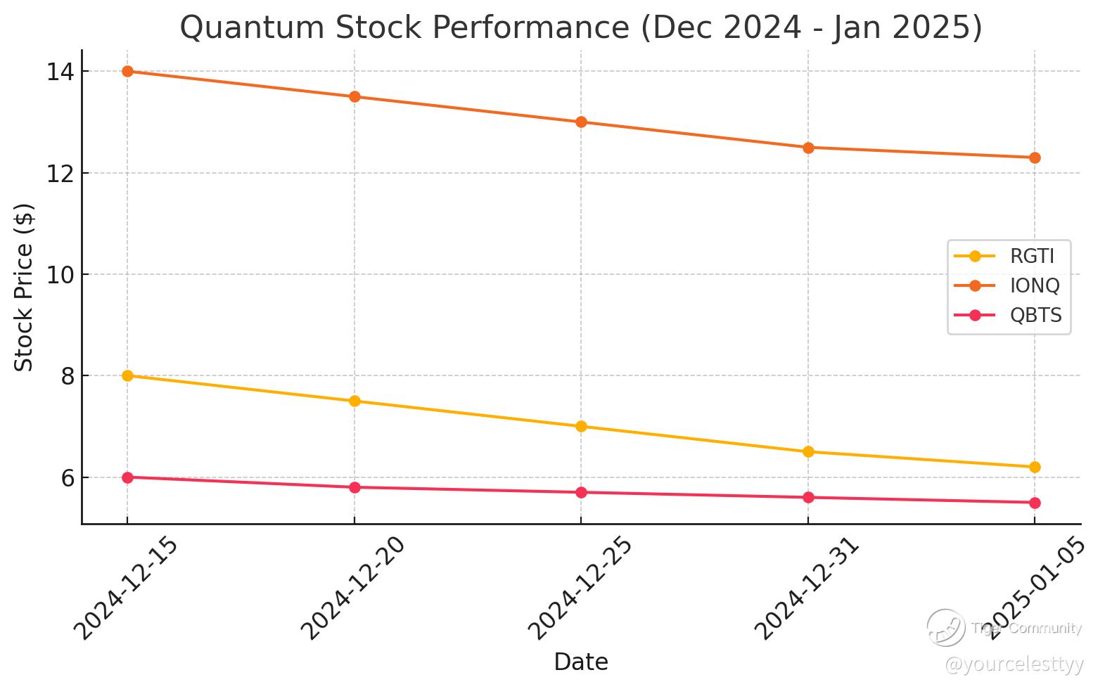 the performance of quantum stocks (RGTI, IONQ, QBTS) from December 2024 to January 2025