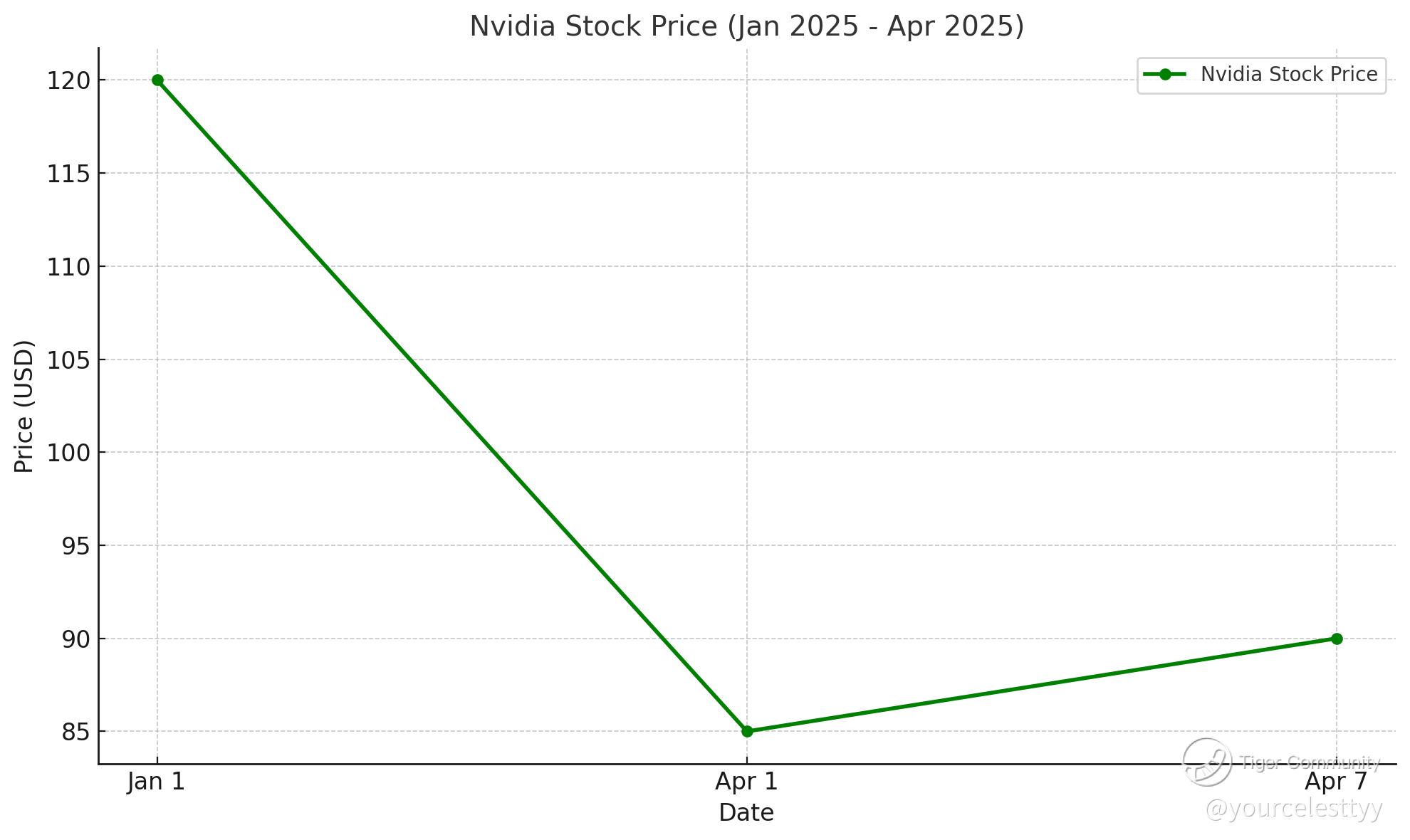 Nvidia's stock price movements from January to April 2025