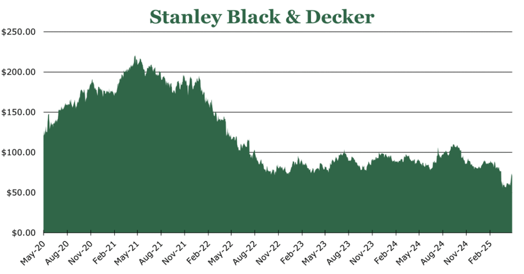 As of the end of April 2025, SWK assumes headwinds of $0.75 per share to earnings due to the tariffs, representing an increase of costs of approximately $1.7 billion. Management emphasized that it does not expect this full cost to hit the company’s bottom line during 2025 due to SG&A cuts and price increases. Overall, we expect around $1-1.1 billion in tariff impacts to hit the bottom line in 2025, which is in line with management’s estimates.