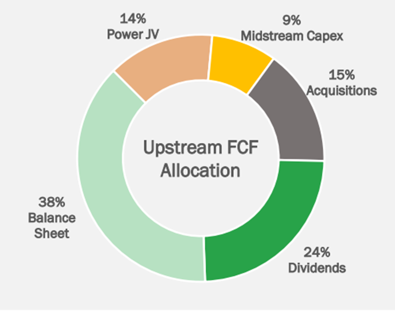 During 2024 management reinvested 44% of cash from operations into exploration and production operations, with 56% being converted into “upstream free cash” and 35% being converted into free cash flow.