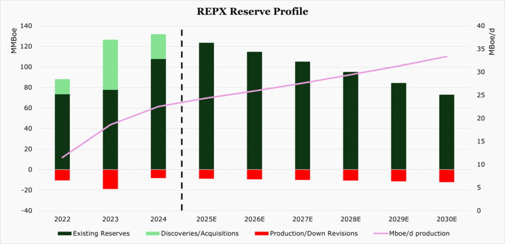While we do expect some short term pressure from weaker pricing, REPX has 60% of oil production hedged and 85% of gas production hedged for 2025 which should provide a floor.