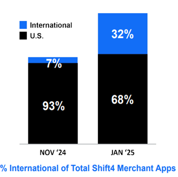 In February 2025, Shift4 announced it would be acquiring Global Blue for $2.5 billion in cash. Global Blue is a specialist payment acquiror, targeting tax-free shopping (VAT refunds) and instant currency conversion.