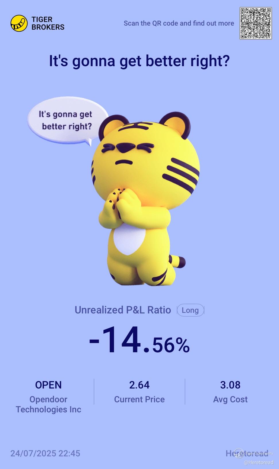 $Opendoor Technologies Inc(OPEN)$ After my last purchase the stock tanked and dropped below my purchase so I purchased the s