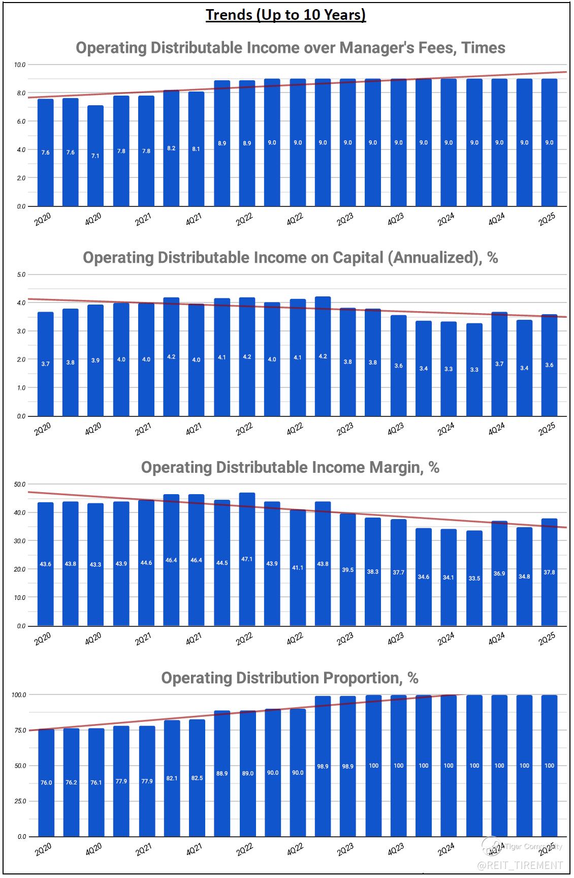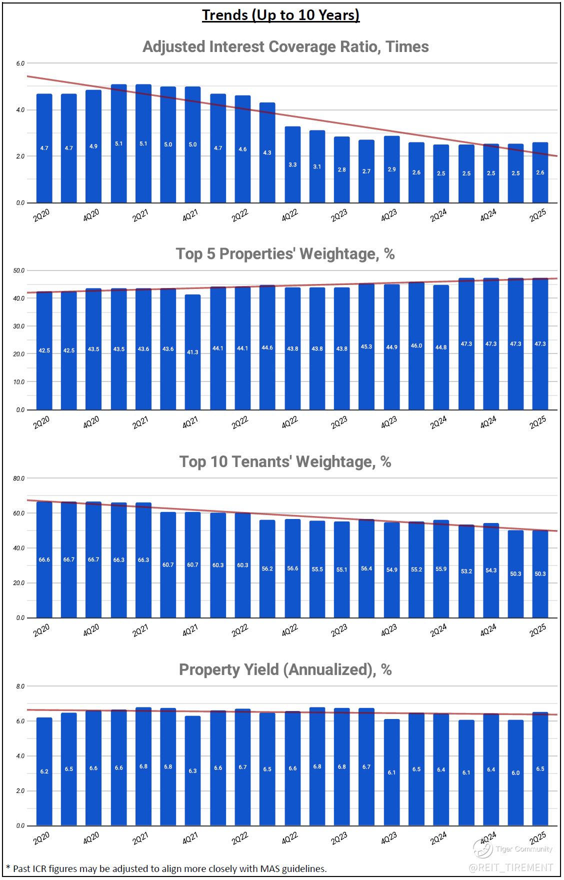 Downtrend: Adjusted Interest Coverage Ratio, Top 10 Tenants' Weightage, Operating Distributable Income on Capital, Operating Distributable Income Margin