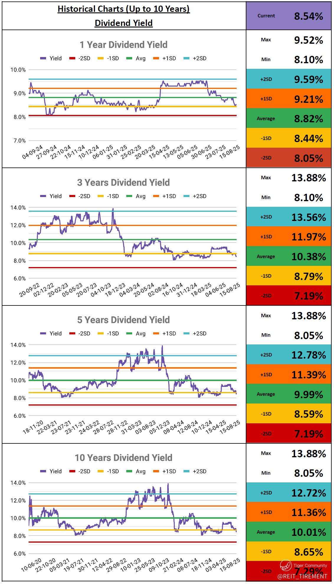 Dividend Yield: Average for 1y; Below -1SD for 3y & 5y & 10y
