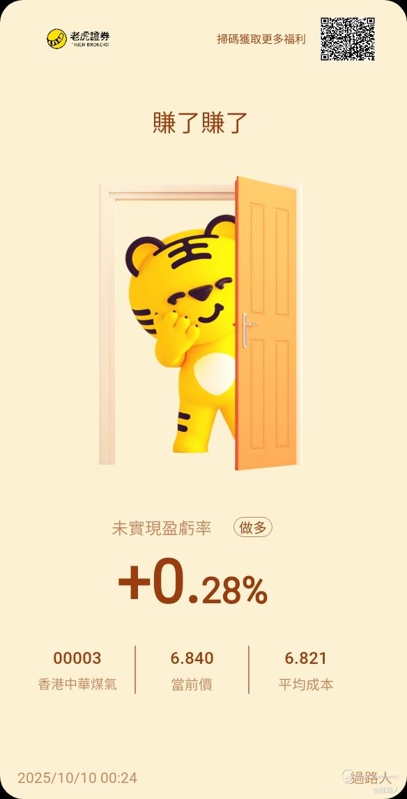 $HK & CHINA GAS(00003)$ 今次慘囉,恒指回調超過200點,煤氣竟然又要隨著大市下跌,令人氣上心頭,咁無計,我又沉不著氣,掃貨。今次係6.75出手增持。最多咪又短炒變長揸囉。收息有5%都不錯,真心