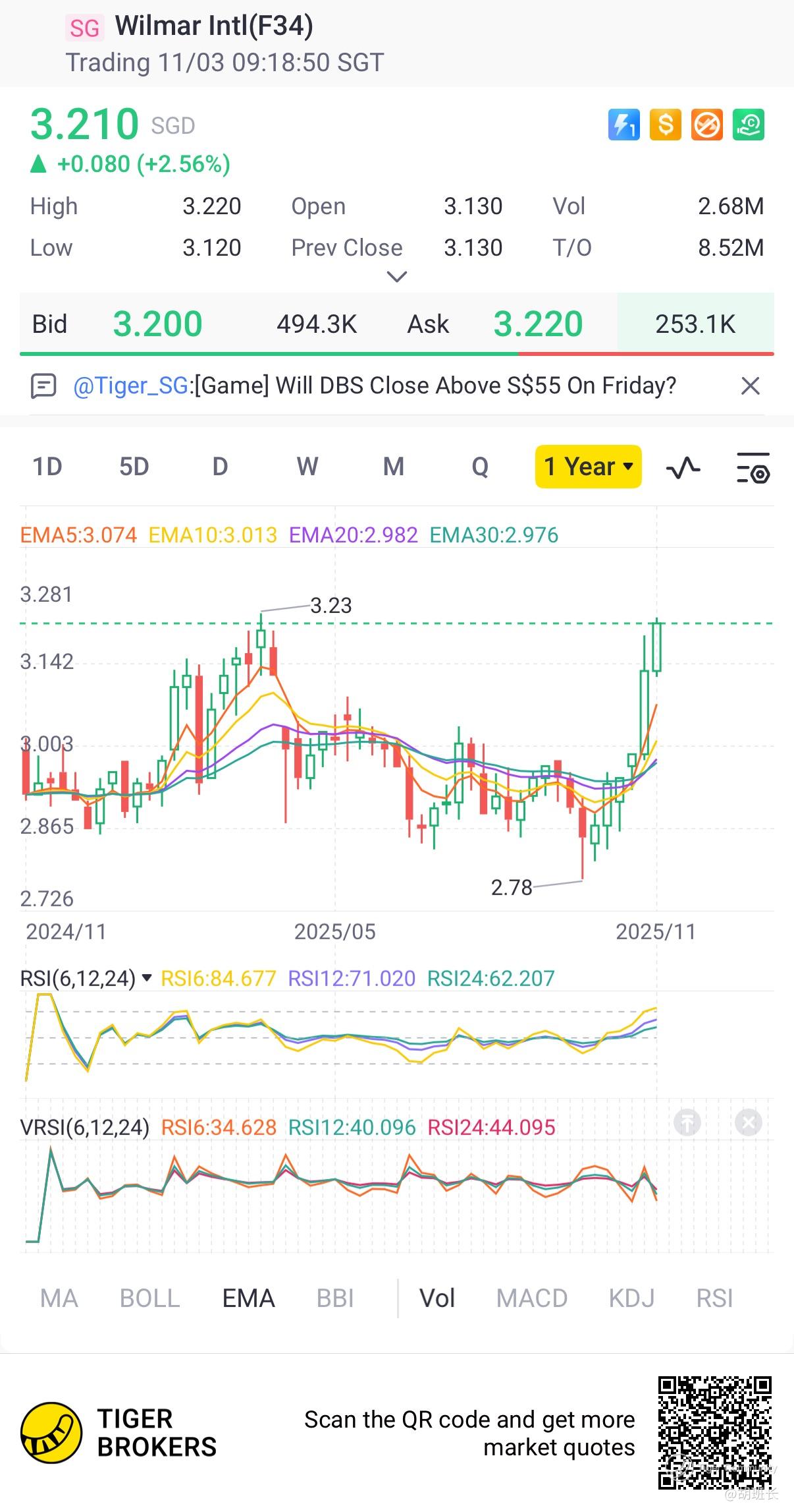 $Wilmar Intl(F34.SI)$  52-week high