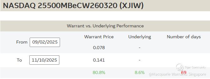 ✳Trending Nasdaq-100 call XJIW (https://warrants.com.sg/tools/HistoricalPerformance/XJIW ) is also up 9 times more than the Nasdaq-100 index with a 80.8% increase since its listing date versus the Nasdaq's 8.6% rally over the same period