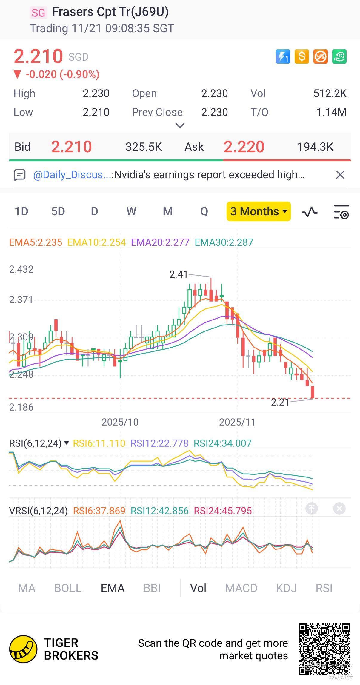 $Frasers Cpt Tr(J69U.SI)$  3-month low