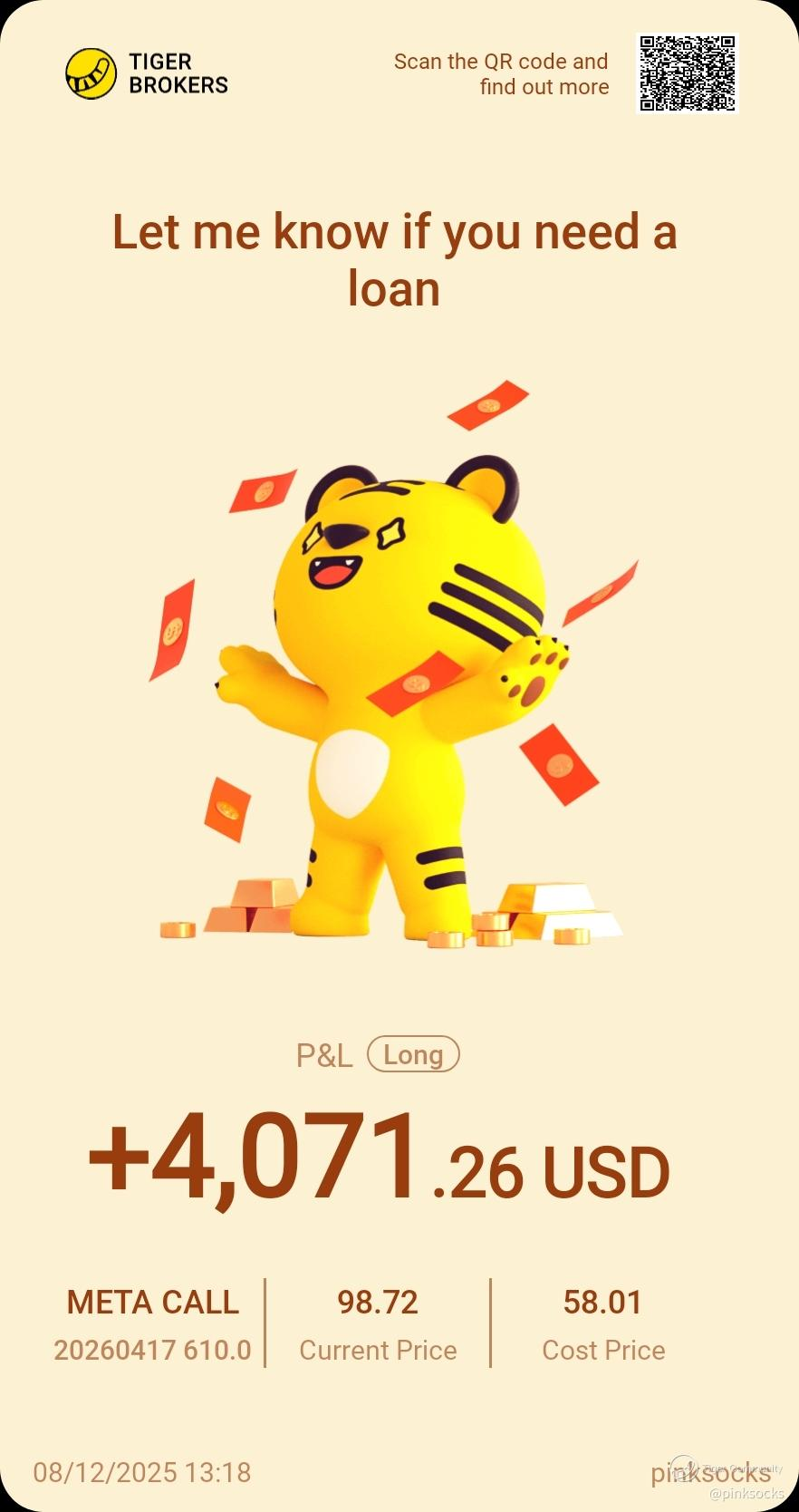 On the market side, Meta’s stock closed 1.48% lower this week with a single-day trading volume of $7.992 billion, showing volatile momentum amid the tech stock swings. Many Tiger Investors have already positioned options trades around Meta’s market rhythm. Let's take a look!