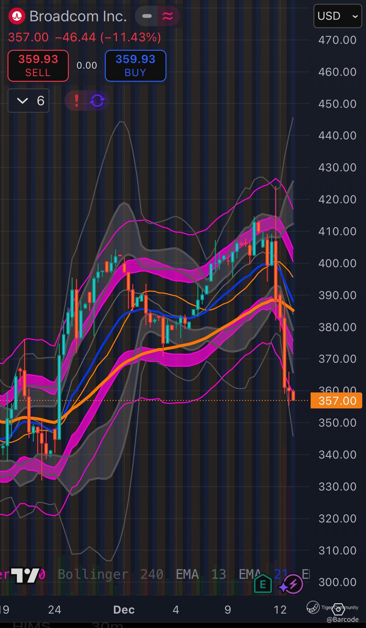 Iβm watching a rare disconnect where price collapses while Wall Street is simultaneously repricing Broadcom higher, and that tension is now sitting directly on a critical structural inflection. $AVGO flushed more than -11% post earnings into the $355.50 trendline and Fibonacci confluence, exactly where prior selloffs have historically stabilised. This is not random volatility, it is a forced reset where positioning, liquidity, and conviction are being repriced in real time.