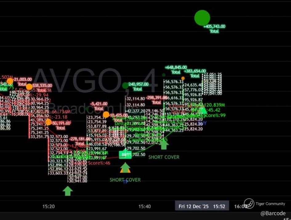 At the same time, fundamentals moved the opposite way. Morningstar reiterated conviction with its call titled βBuy the Dip Before the Rocket Takes Off,β pointing to accelerating AI chip demand, Googleβs TPU momentum, and a newly disclosed $11B Anthropic order, while lifting fair value to $480. Truist escalated further, raising its price target to $500 from $365 in the same earnings cycle. That is not incremental optimism, that is a structural repricing. The tape confirmed it late, with a massive buyer stepping in at the close to absorb liquidity into fear.