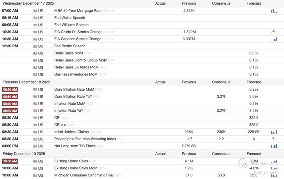Wednesday adds energy volatility. EIA crude inventories fell by 1.812M barrels while gasoline inventories surged 6.397M barrels, highlighting demand imbalances that continue to cap sustained oil upside. Thursday is the fulcrum. US CPI prints with headline and core at 3.2% YoY versus 3.0% expected, and core MoM at 0.2%. This keeps policy restrictive without triggering panic. Shelter inflation continues to slow, used vehicle pricing remains deflationary, and market-based inflation expectations have already compressed. ECB policy and Lagarde’s press conference add global cross-currents, while Friday’s existing home sales and Michigan sentiment close the loop. Triple witching quietly amplifies flows into the close, adding mechanical pressure across equities, index options, and futures.