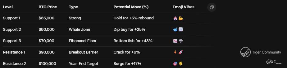 The crypto king's crown is slipping fast as Bitcoin battles brutal selling pressure, testing that critical $85,000 line like a tightrope walker over a chasm. ποΈ This level's no stranger to drama β it's held as support multiple times since November, but with volume spiking 40% on the drop, bears are circling for a break. If $85K crumbles, the next pit stop's $80,000, where whale accumulations piled up during August's wipeout. But plunge deeper, and $70,000 looms as the ultimate test β that's the 50% Fibonacci retracement from the March lows to October highs, a zone packed with historical buys that could flip the script for a V-shaped bounce. On the flip side, if bulls defend $85K with fresh inflows like MicroStrategy's billion-dollar binge, resistance at $90,000 could crack for a quick 5% rebound, eyeing $100K by year-end if sentiment shifts. π