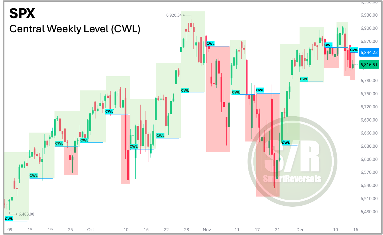 Waiting for a Monthly Level or a 20 day Moving Average to break can sometimes mean reacting too late. To get a faster signal, I use the Central Weekly Level (CWL).