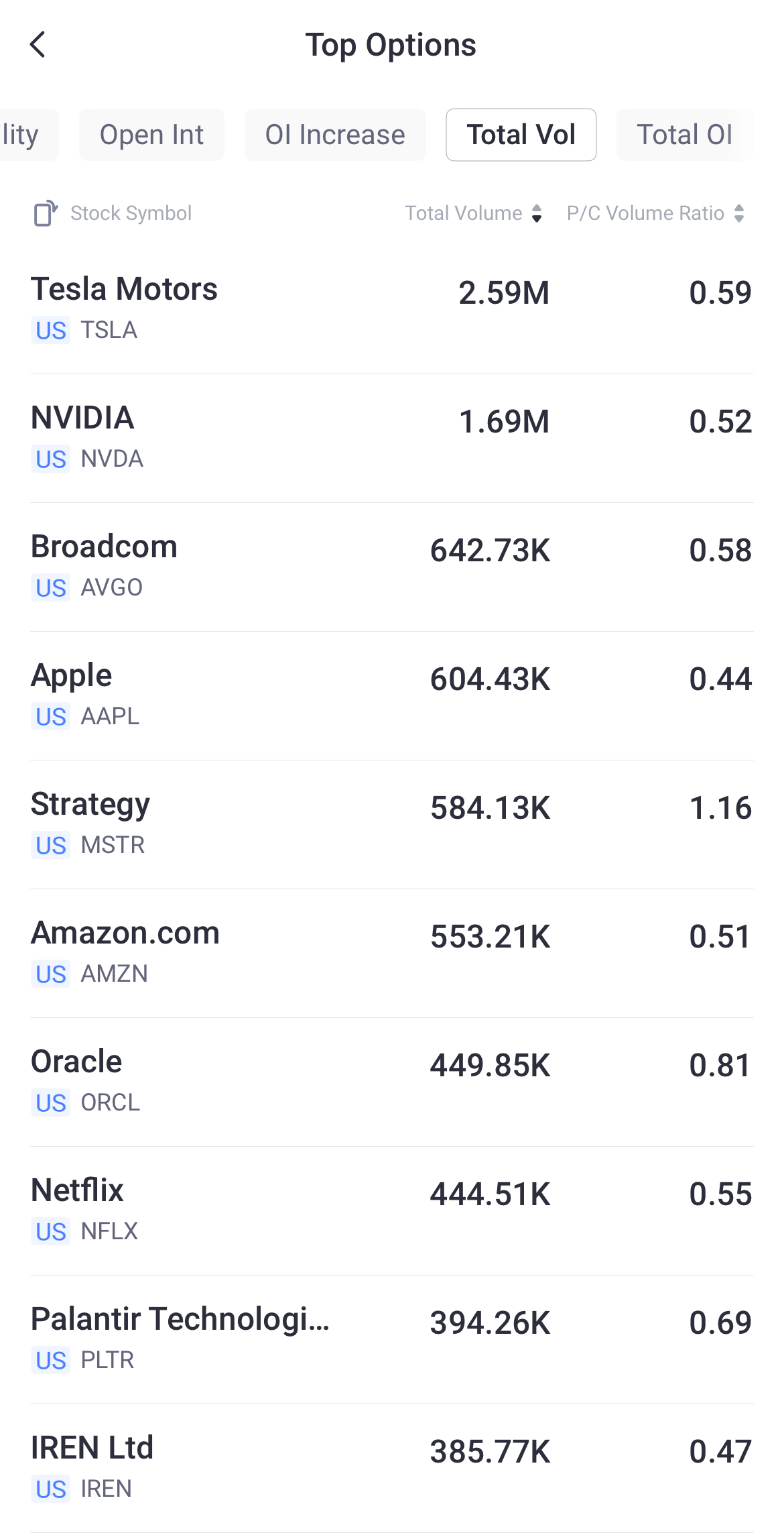 Regarding the options market, a total volume of 59,533,478 contracts was traded on Monday.