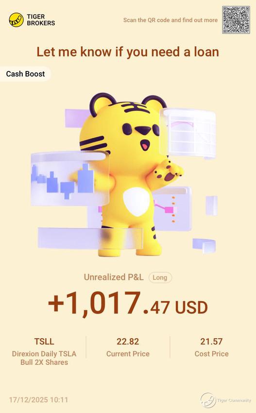 $Direxion Daily TSLA Bull 2X Shares(TSLL)$ The moment I opened the account, I felt all this week’s hard work was soothed!