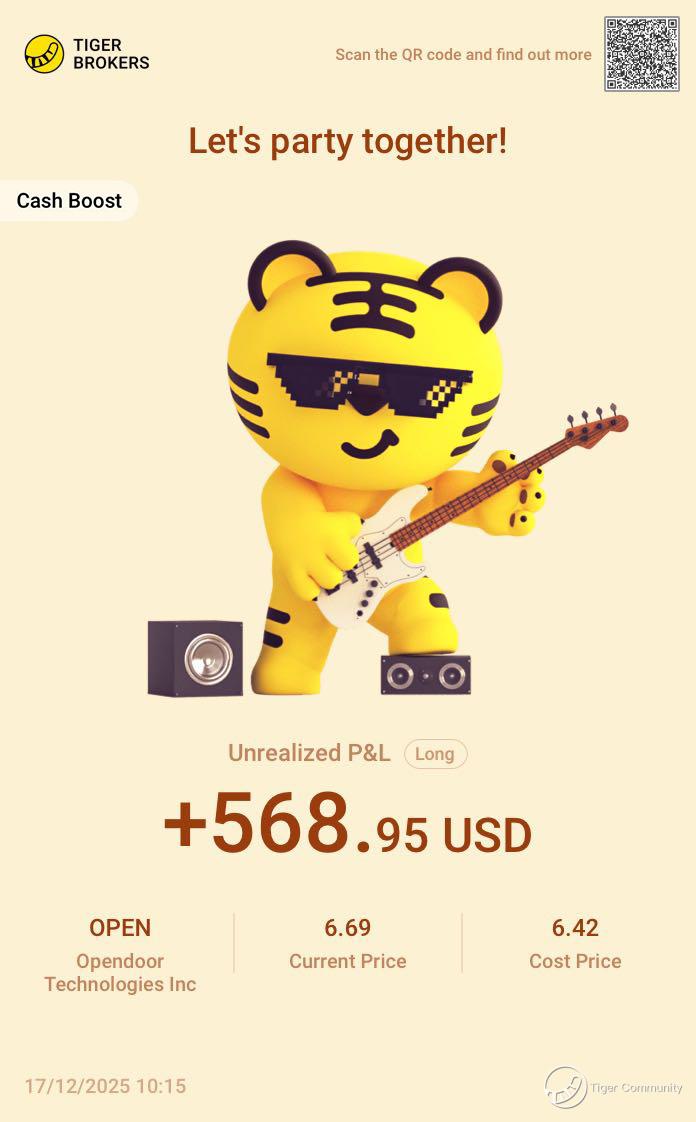 $Opendoor Technologies Inc(OPEN)$ A small stock profit adds a little joy to ordinary days!