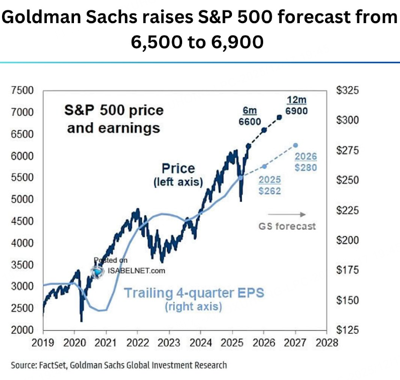 Goldman Sachs has lifted its 12-month $S&P 500(.SPX)$ target to 6,900, up from 6,500 — its second upgrade in just two months. The 3-month and 6-month targets? 6,400 and 6,600, respectively. 🔼📈