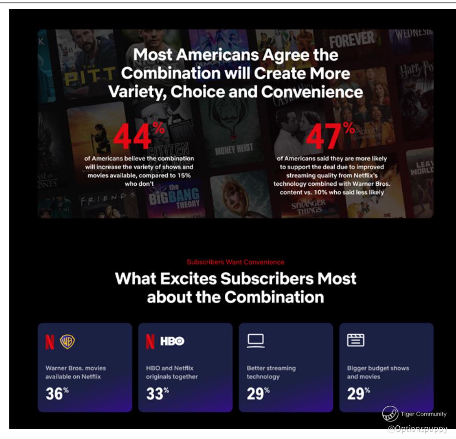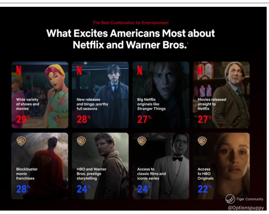 Nearly half of Americans believe the combination would increase the variety of shows and movies available. Importantly, this increase in variety comes without requiring consumers to actively search across platforms. Content such as HBO prestige series, Warner Bros. theatrical films, and Netflix originals would coexist in one ecosystem.