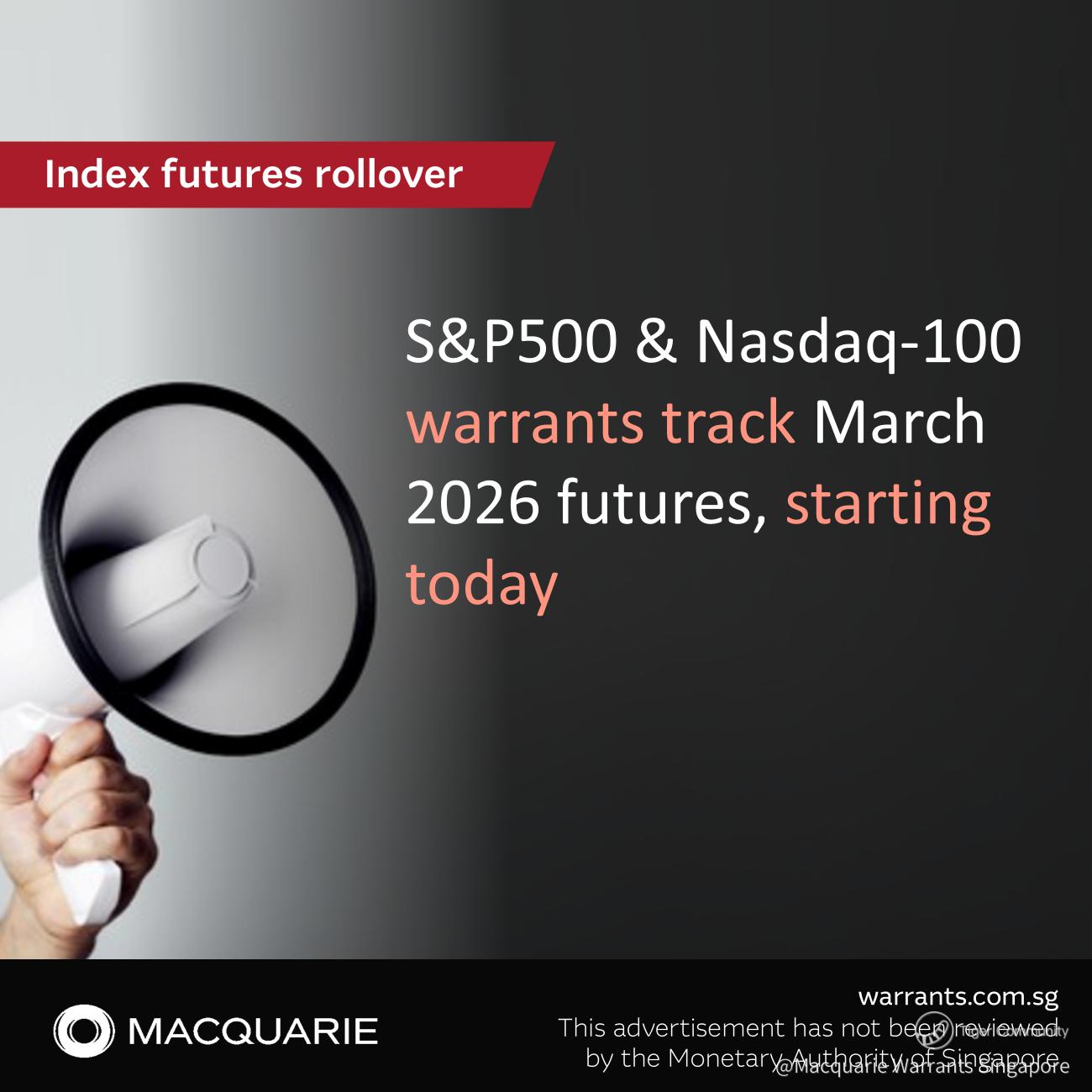 🛤Macquarie’s index warrants track the underlying index futures. In this case, our S&P500 and Nasdaq-100 warrants track their respective CME-listed e-mini futures contracts during the Singapore trading hours of 915AM to 5pm.