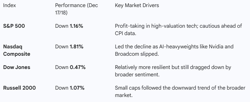 India (Sensex/Nifty): Edged lower (approx. -0.2%) following global trends, though domestic institutional buying provided some support.