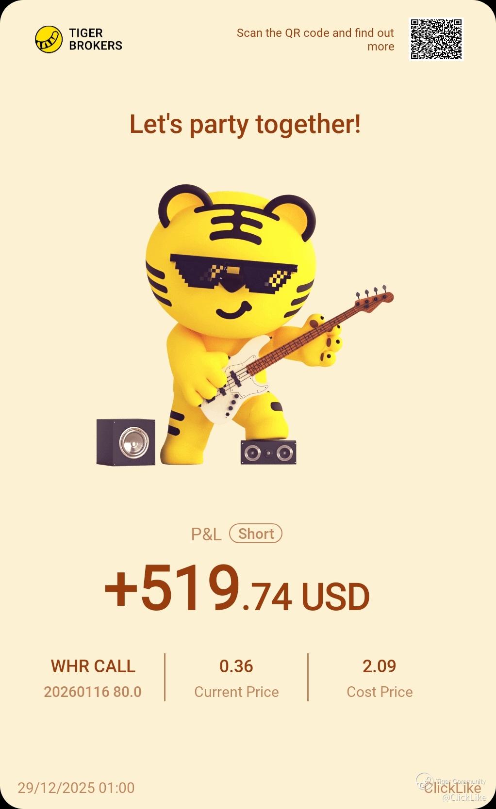 Share your positions with us! This is a column where you can find the winning trades of our fellow tigers. There probably are a few potential opportunities that you may have overlooked.
