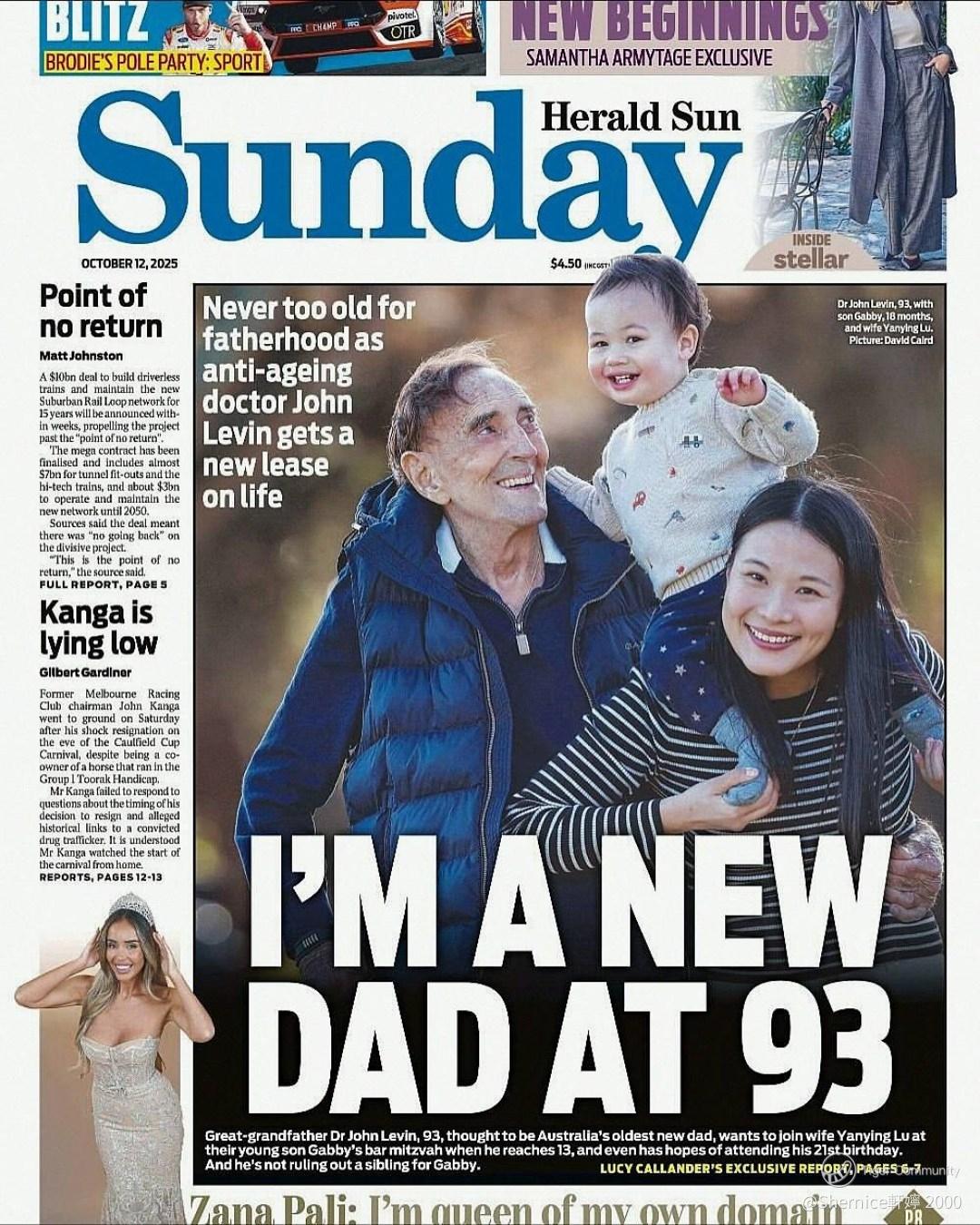 Now a father again at 93, Lewin is often mistaken for the baby’s great-grandfather. He smiles and carries on. Labels don’t raise children; love does.