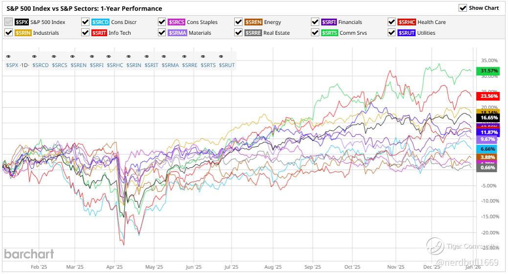 1. The "Great Rotation" from Growth to Value While the Nasdaq won 2025, the internal market dynamics shifted in Q4. Investors began rotating profits from "AI winners" (like $NVIDIA(NVDA)$ Nvidia and heavy semiconductor plays) into cyclical sectors such as Financials, Industrials, and Materials.