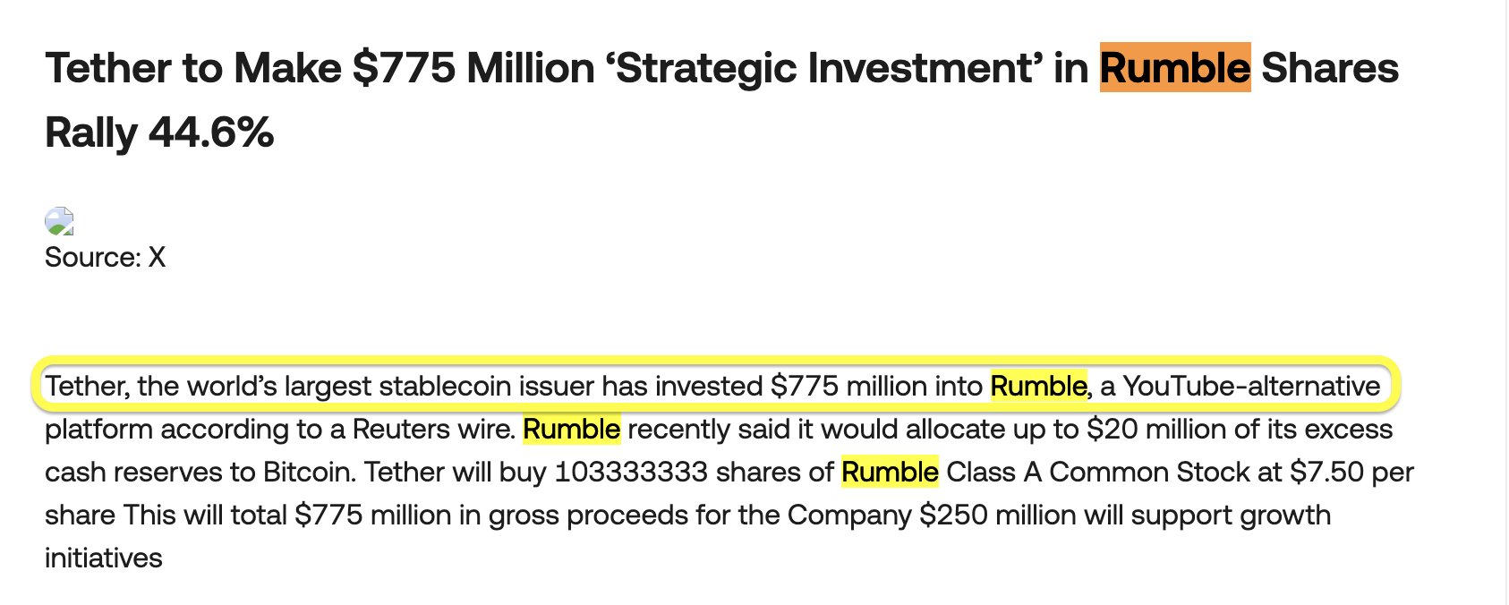 Tether, yes the largest stablecoin issuer in the world, is RUM largest shareholder and JUST bought more shares in late November.