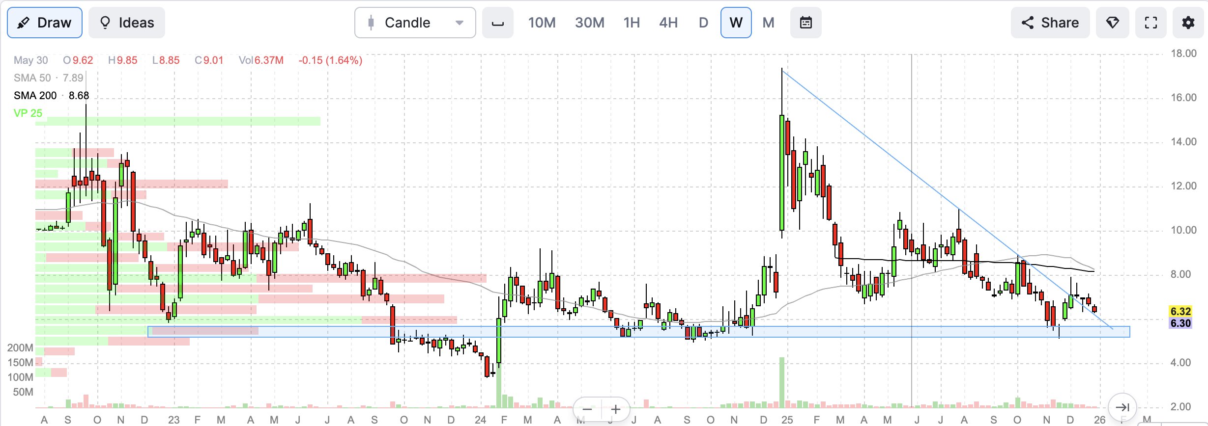 Chart is bottomed + has been known to rip (and has 20% short interest too).