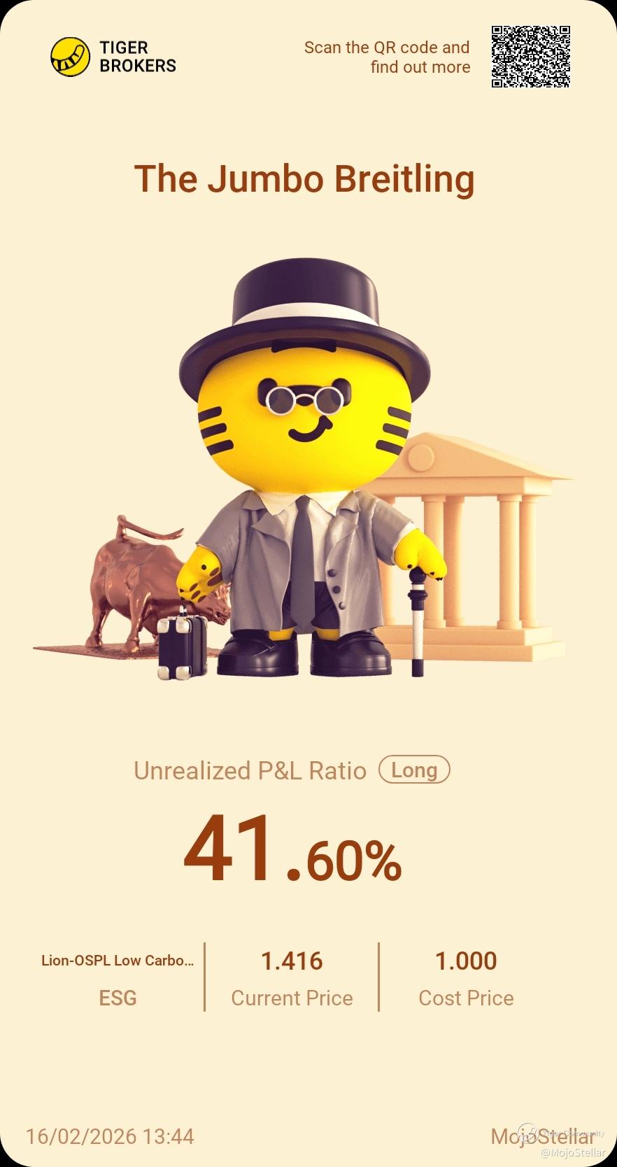 $Lion-OSPL Low Carbon S$(ESG.SI)$ As we welcome the Lunar New Year, I would like to extend my warmest wishes to the entire Tiger Brokers team and fellow investors. May the new year bring clarity in strategy, discipline in execution, and resilience through market cycles.