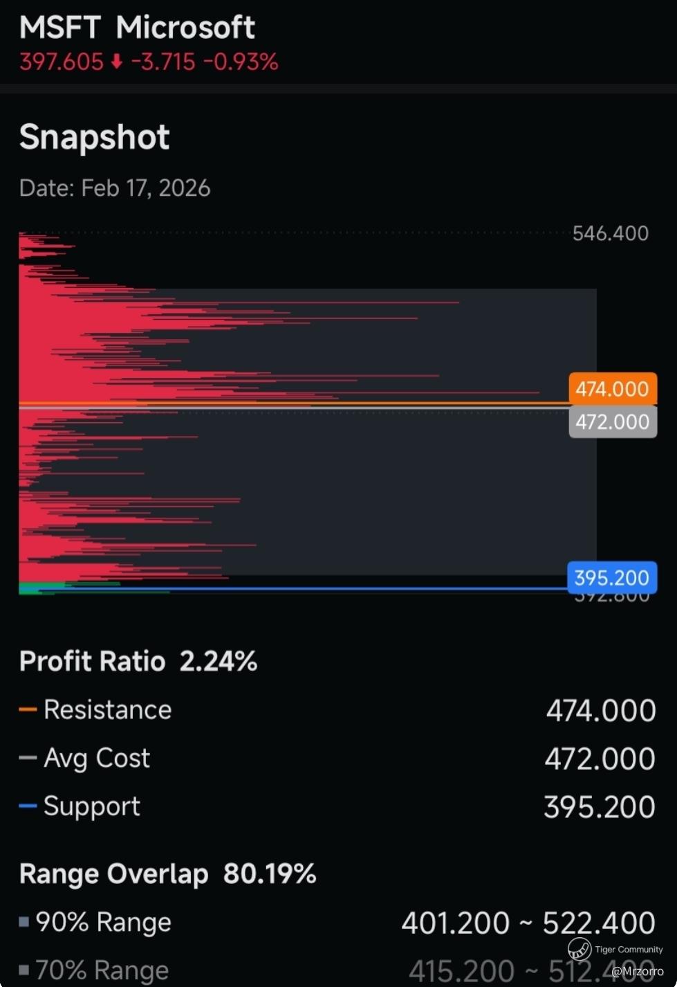 A lot of the positions in Microsoft are already losing money after the stock tumbled about 27% from its peak in late October. The remaining profitable position were purchased at an average price $395.20, according to exchange data tracked. The stock is now trading less than $4 above that critical support level.