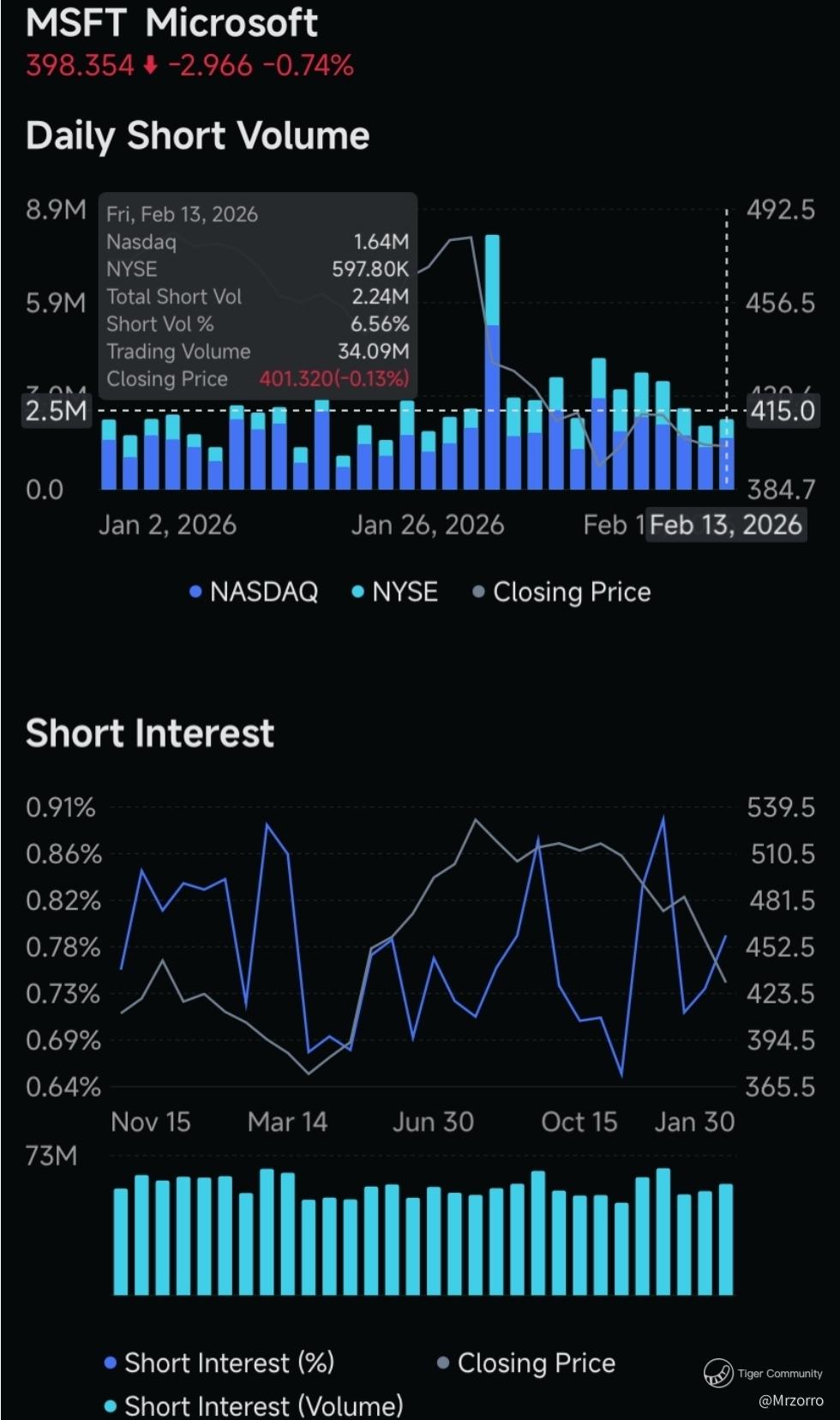 Trading in borrowed $Microsoft (MSFT.US)$ shares that were sold short edged higher at 2.24 million shares Friday, from 2.02 million shares a day earlier, adding to the downward pressure that sent the world's largest software company deeper into a bear market. The U.S. stock market was closed Monday for a public holiday.