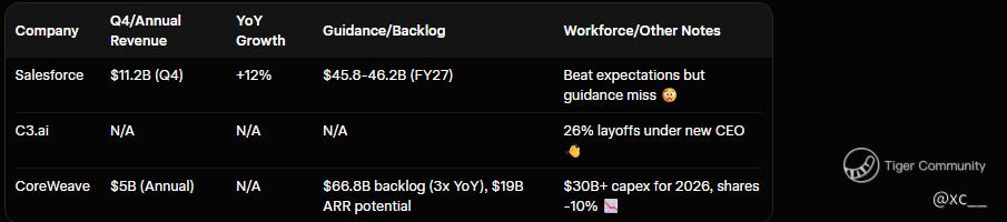 First up, Salesforce is flexing some serious muscle but still missing the mark on future vibes. Their Q4 haul? A whopping $11.2 billion in revenue, soaring 12% year-over-year—their zippiest sprint in two years! 🏃♂️💨 They crushed analyst expectations on the top line, proving cloud CRM is still king. But hold the confetti: Their FY2027 guidance landed at $45.8–46.2 billion, just a hair under the $46.06 billion whisper number. Ouch! 😬 Shares tanked in after-hours trading as traders freaked over the "miss," sparking fears that even the big dogs are feeling the pinch from economic headwinds like inflation and cautious enterprise spending. Is this a sign that AI hype isn't translating to bottom-line magic fast enough? 🤖❓