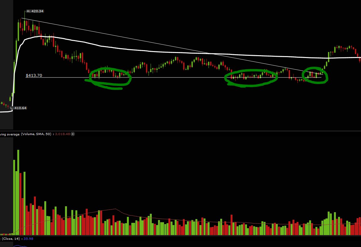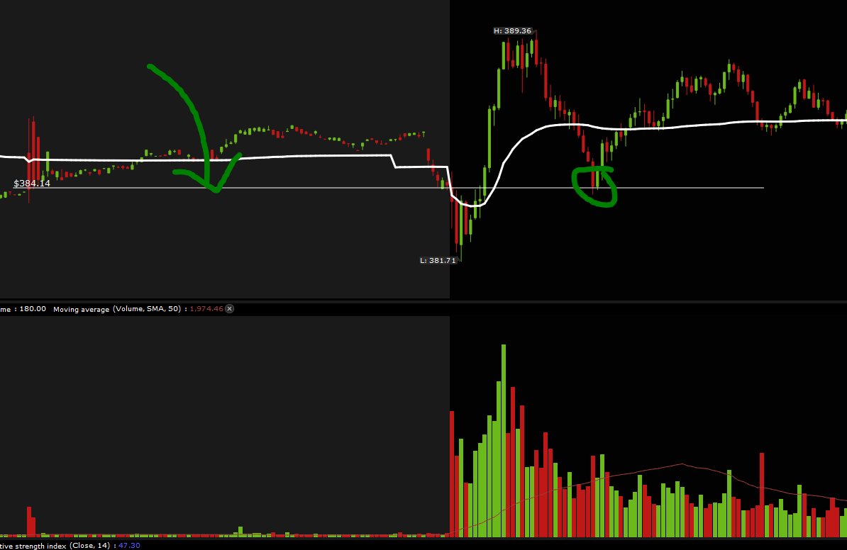This you'll always need to remember. 1. This is the premarket LOW at open it becomes resistance then it becomes support. You can see sellers boucne right off of it then buyers step in with volume. This is your entry. Then set a stop loss right under the previous candle where sellers are trapped.