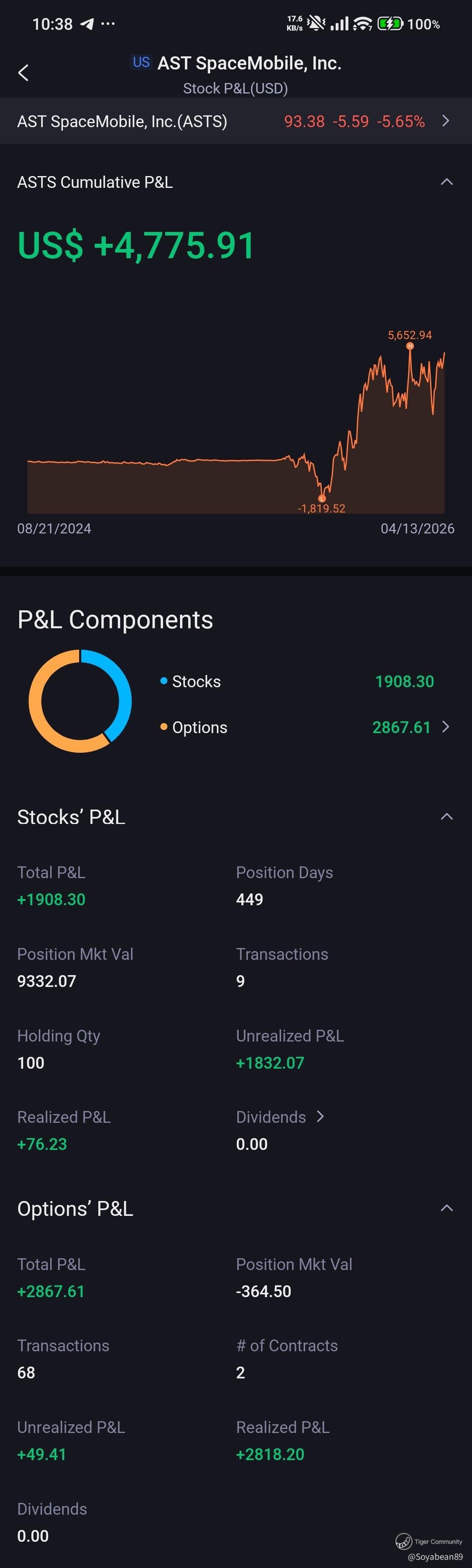 $AST SpaceMobile, Inc.(ASTS)$ selling put n call with this 100units that I got assigned since oct 2025...