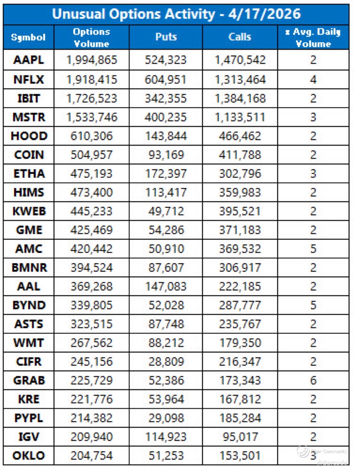 Heavy relative activity concentrated in $AAPL, $NFLX, $IBIT and $MSTR