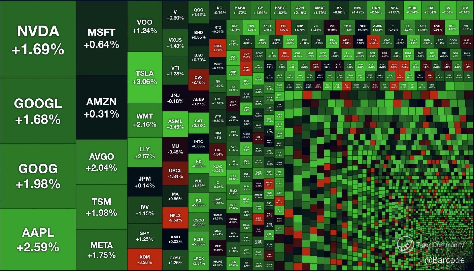 This reflects a combination of mega-cap leadership, event-driven repositioning, and leveraged digital asset exposure rather than uniform conviction across equities.