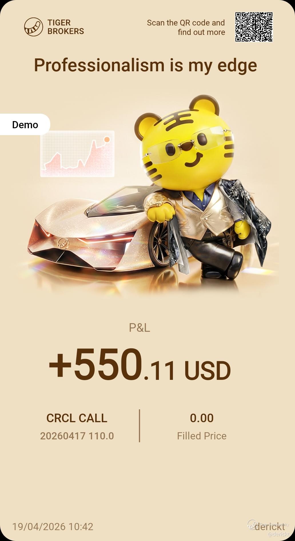 $CRCL 20260417 110.0 CALL$ sold call for good premium. Phew did not get assigned