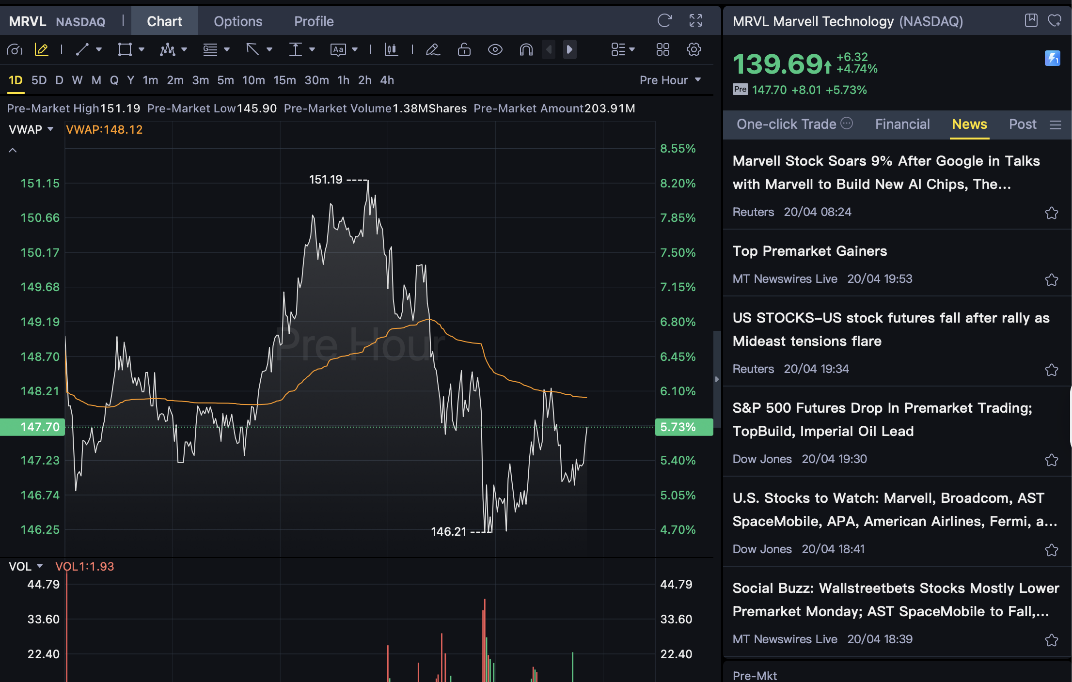 But Monday brought a twist: $Alphabet(GOOG)$ is in talks with $Marvell Technology(MRVL)$ to develop two new AI chips—a memory processing unit (to pair with TPUs) and an inference-focused TPU. That sent $Marvell Technology(MRVL)$ soaring, while $Broadcom(AVGO)$ and $Celestica(CLS)$ ) faced early pressure. Check out those market moves!