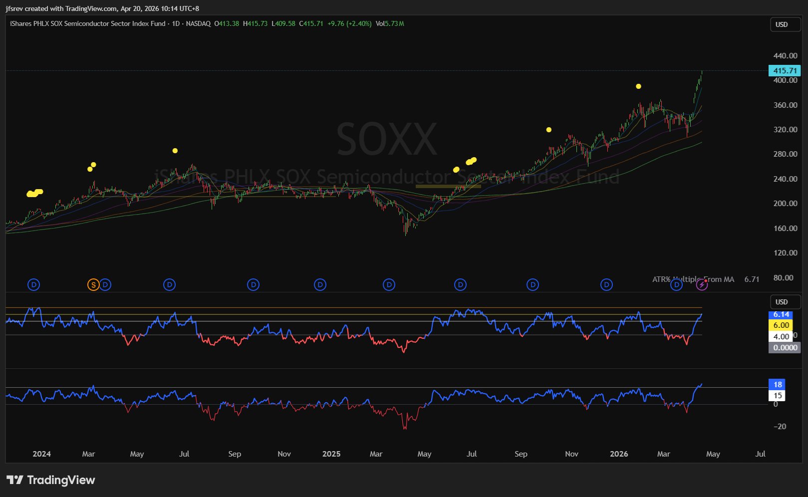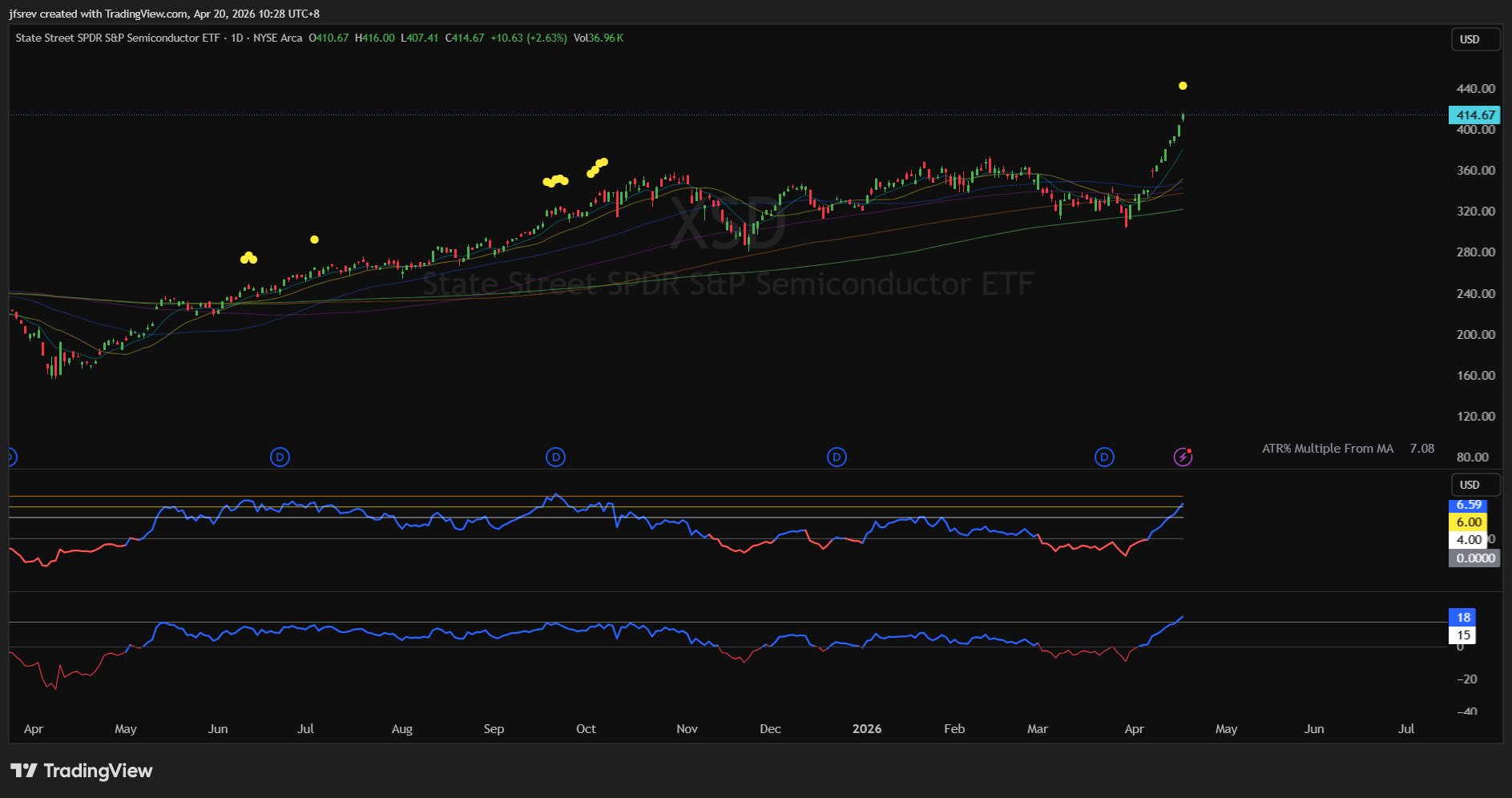 $VanEck Semiconductor ETF(SMH)$ (Semi Giants) with $NVIDIA(NVDA)$ $Taiwan Semiconductor Manufacturing(TSM)$ $Broadcom(AVGO)$ $Intel(INTC)$ $Lam Research(LRCX)$ $KLA-Tencor(KLAC)$ $Advanced Micro Devices(AMD)$ $ASML Holding NV(ASML)$ $Micron Technology(MU)$ $Applied Materials(AMAT)$ $Marvell Technology(MRVL)$ totaling near 70% weight is still 1.5 x ATR% away