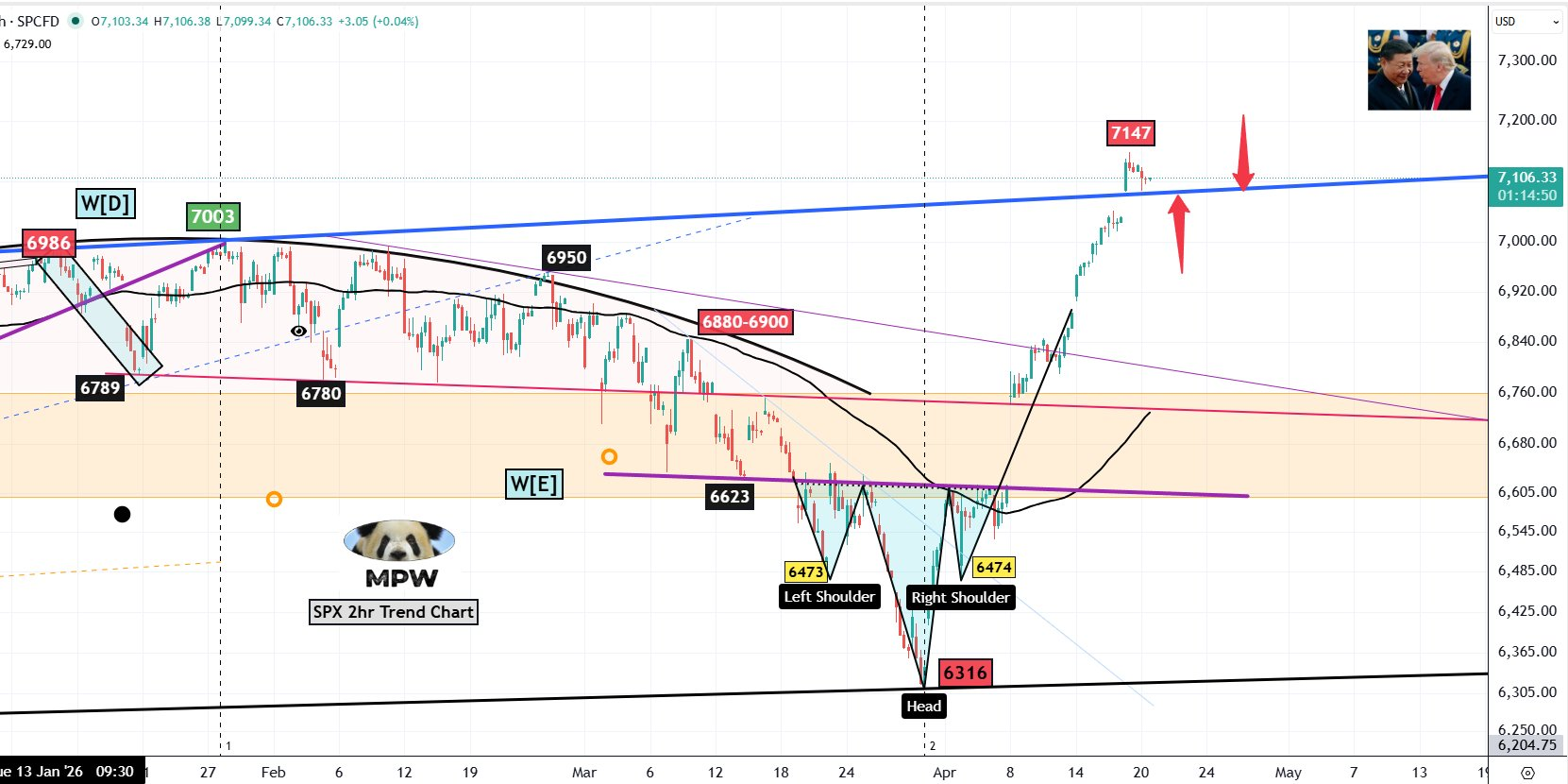 (3) 6950 zone will be a target for a sideway complex w-4, before w-5 to XI/TRUMP.