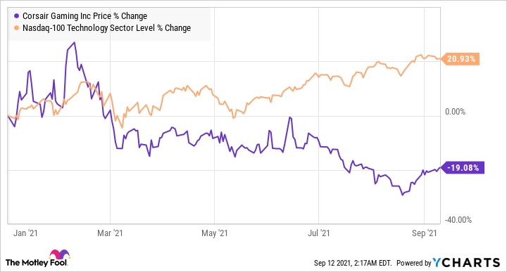 The Nasdaq 100 Technology Sector Index has gained more than 20% so far in 2021 despite a volatile start to the year, but not all tech stocks have enjoyed similar good fortunes on the stock market. Corsair Gaming (NASDAQ:CRSR) is one such stock that has struggled in 2021 despite turning in impressive financial growth.