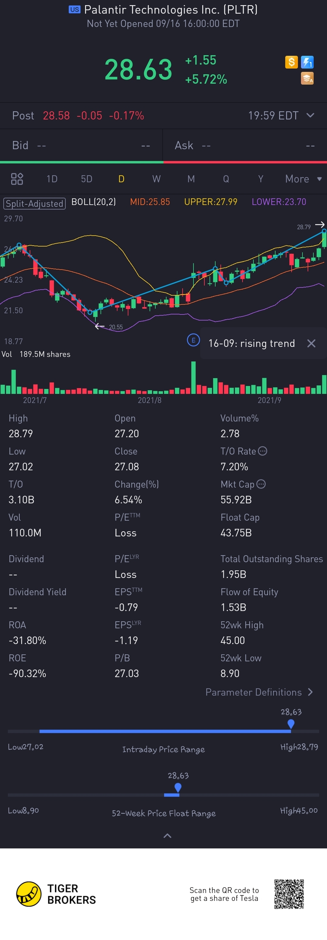$Palantir Technologies Inc.(PLTR)$Woot! Good momentum! Keep it going!