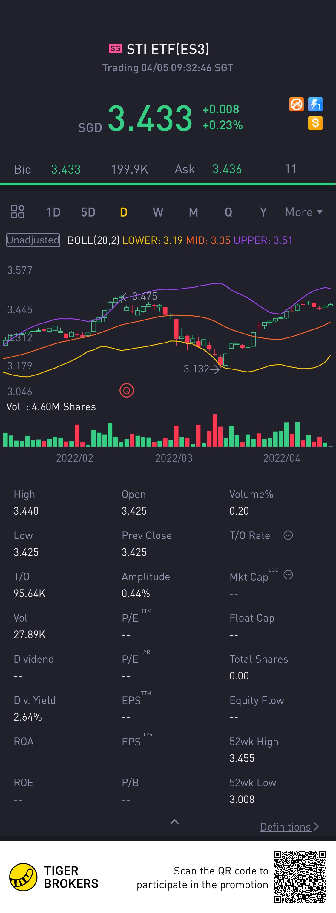 $STI ETF(ES3.SI)$Reaching 3.50 soon