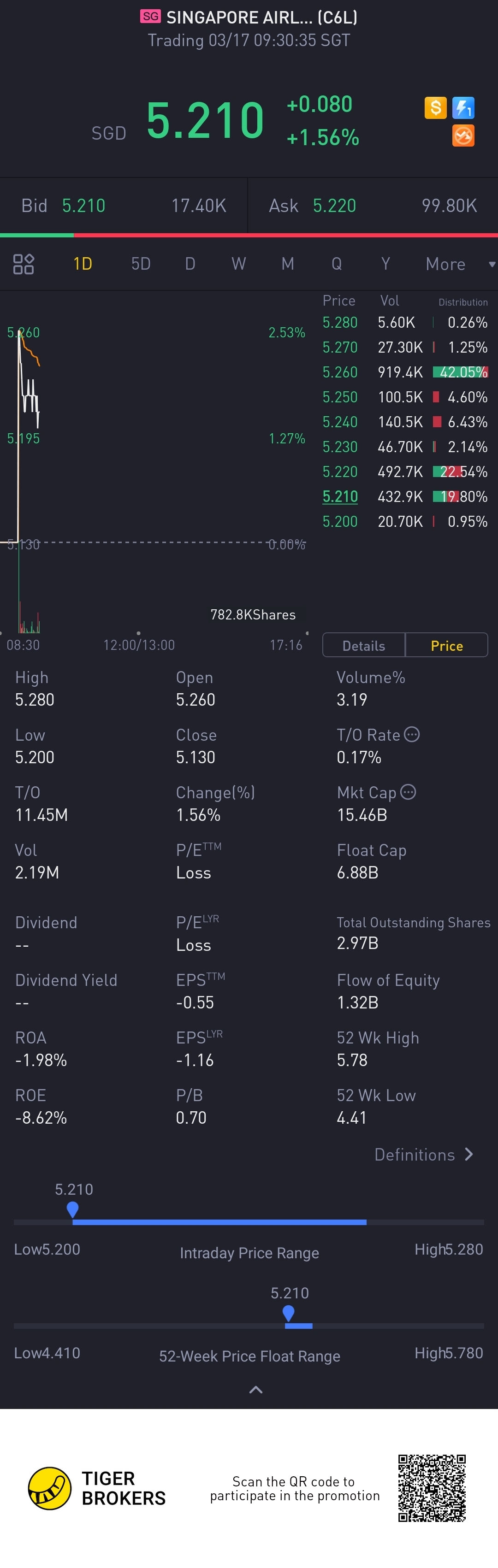 $SINGAPORE AIRLINES LTD(C6L.SI)$ up [Grin]