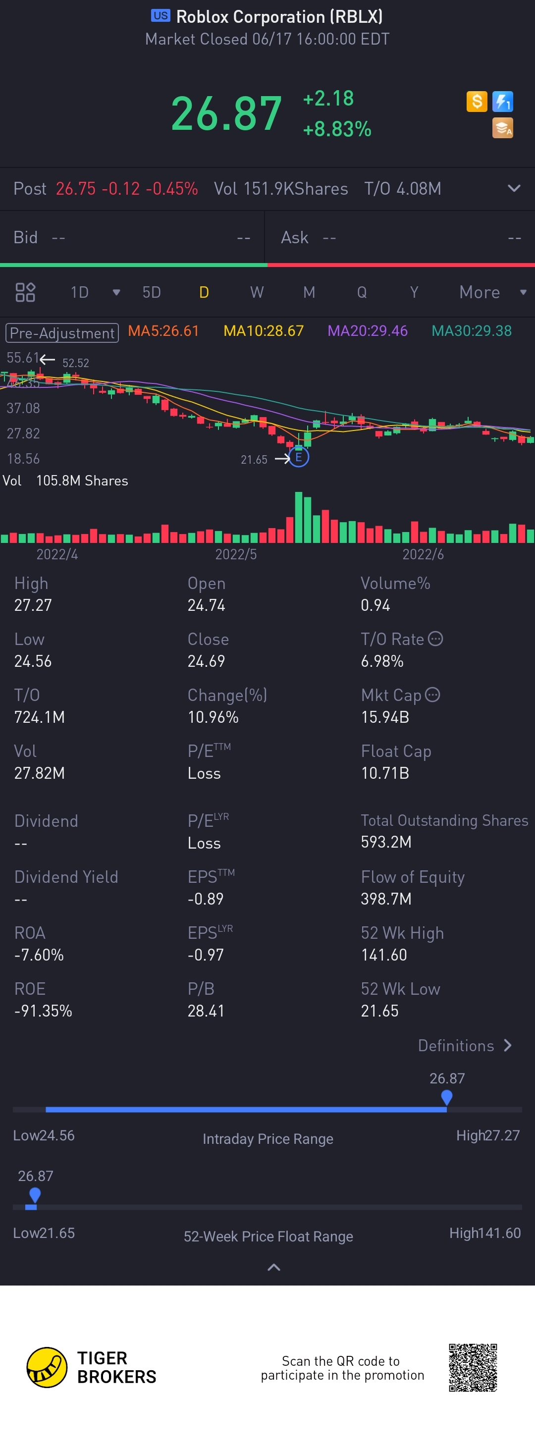 Roblox management reported a mixed first quarter to kick off 2022. Its top line surged 38.8% year over year to $537.1 million, and its bottom line finished at a negative $0.27 per share, which missed estimates but still improved from its $0.46 per-share loss in the same quarter a year ago. Total bookings declined 3.2% to $631.2 million, coming in below analysts' expectations.