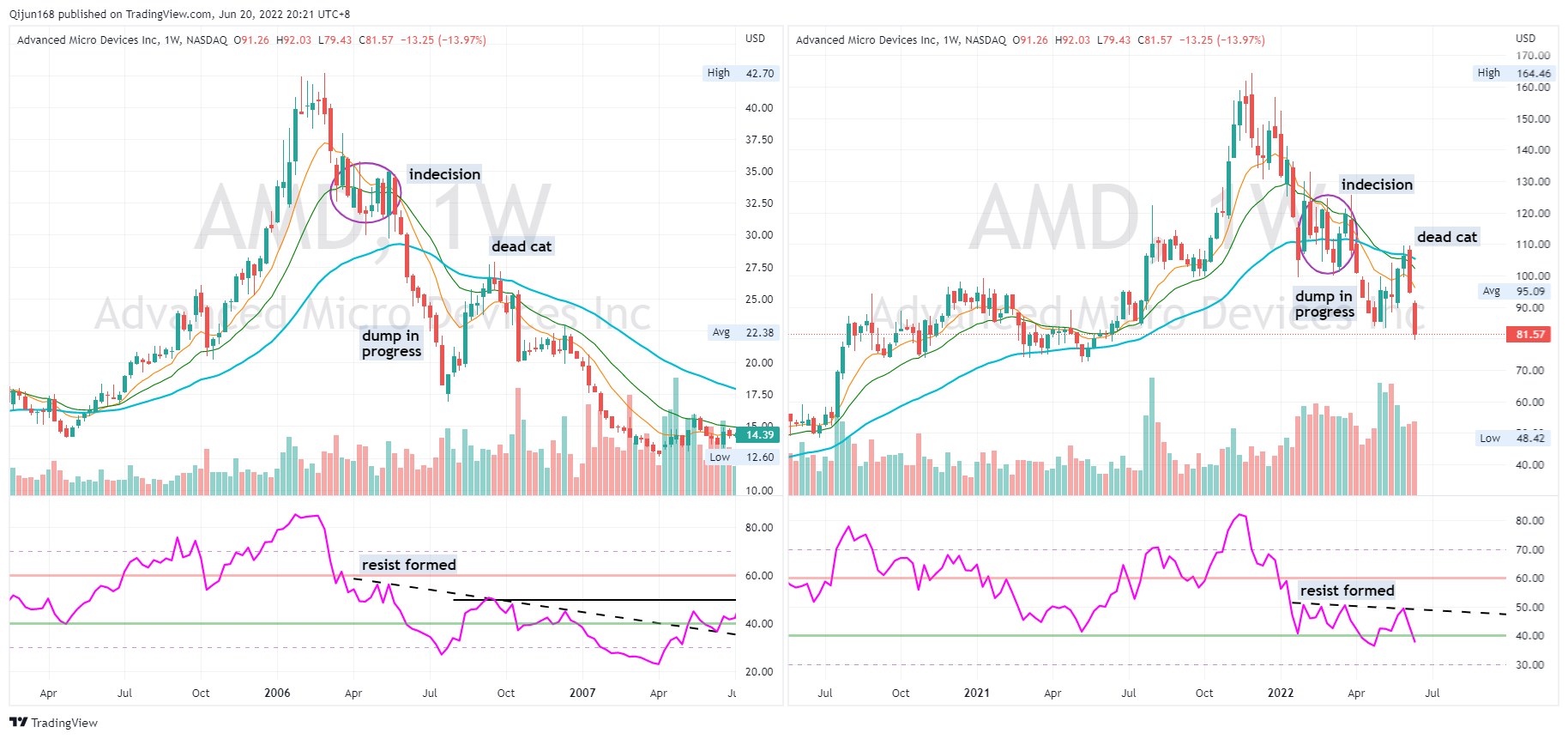 Euphoria TOP -> indecision (circled) -> dump in progress -> dead cat -> sell down continues