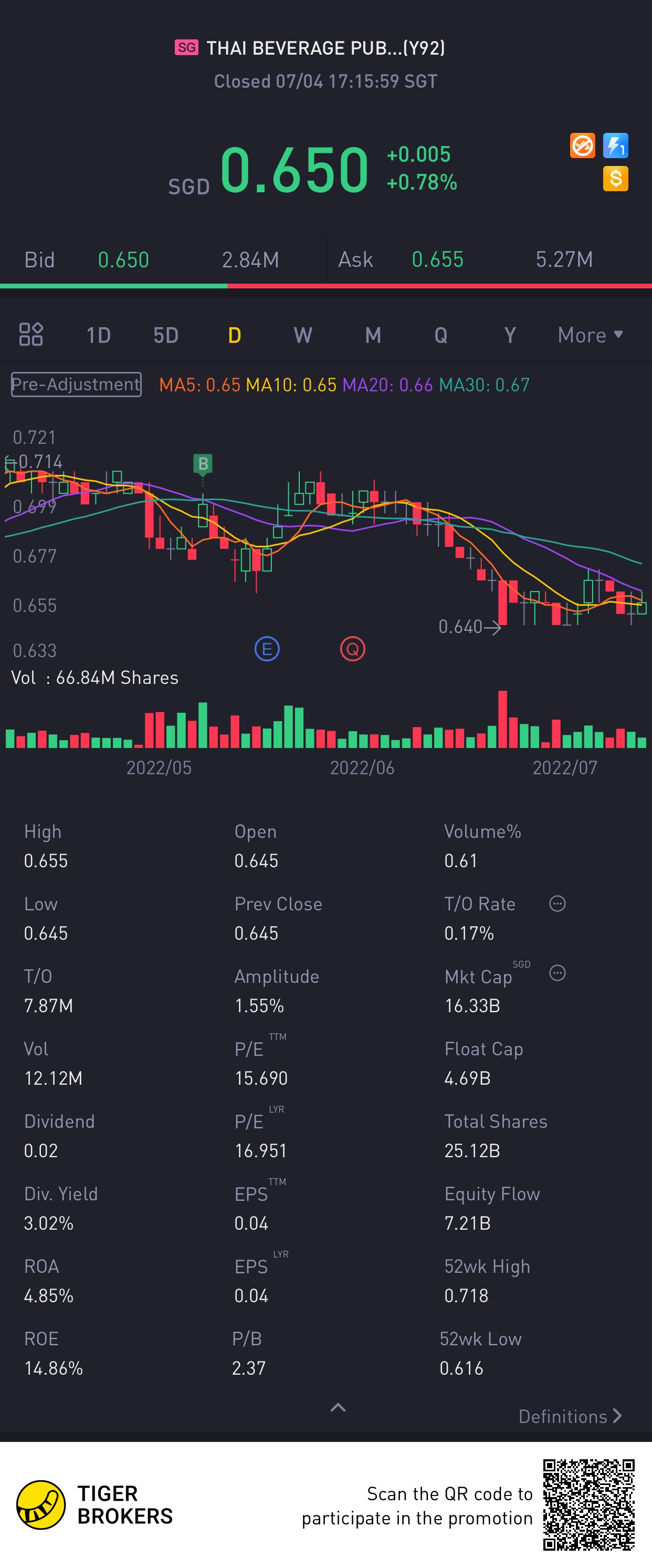 Thai Beverage shares closed at S$0.65 today, one of the lowest price in nearly a month. 🤷🏻